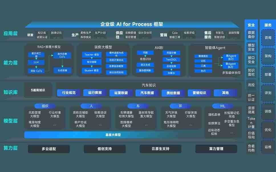 端到端的一站式AI工作空间深度融合了从企业战略规划到日常经营的全流程业务板块,,,定向解决车企内部领域多、、、部门多、、、链条长、、、、场景碎片化等难题,,,支持车企快速构建以AI为核心的生产力写作体系,,实现任务执行与AI能力的无缝集成与交互