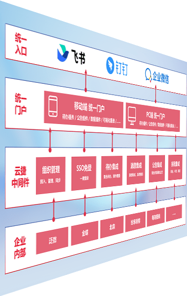 对协作平台提供支持服务,,支持企业应用与协作平台对接,,包含组织同步、、消息集成、、待办集成等。。。支持目前主流的协作平台:钉钉、、、企微和飞书。。。